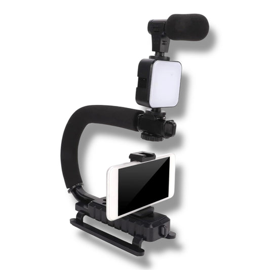 Estabilizador portátil en forma de U con micrófono y luz LED para cámaras y smartphones - AY-49U