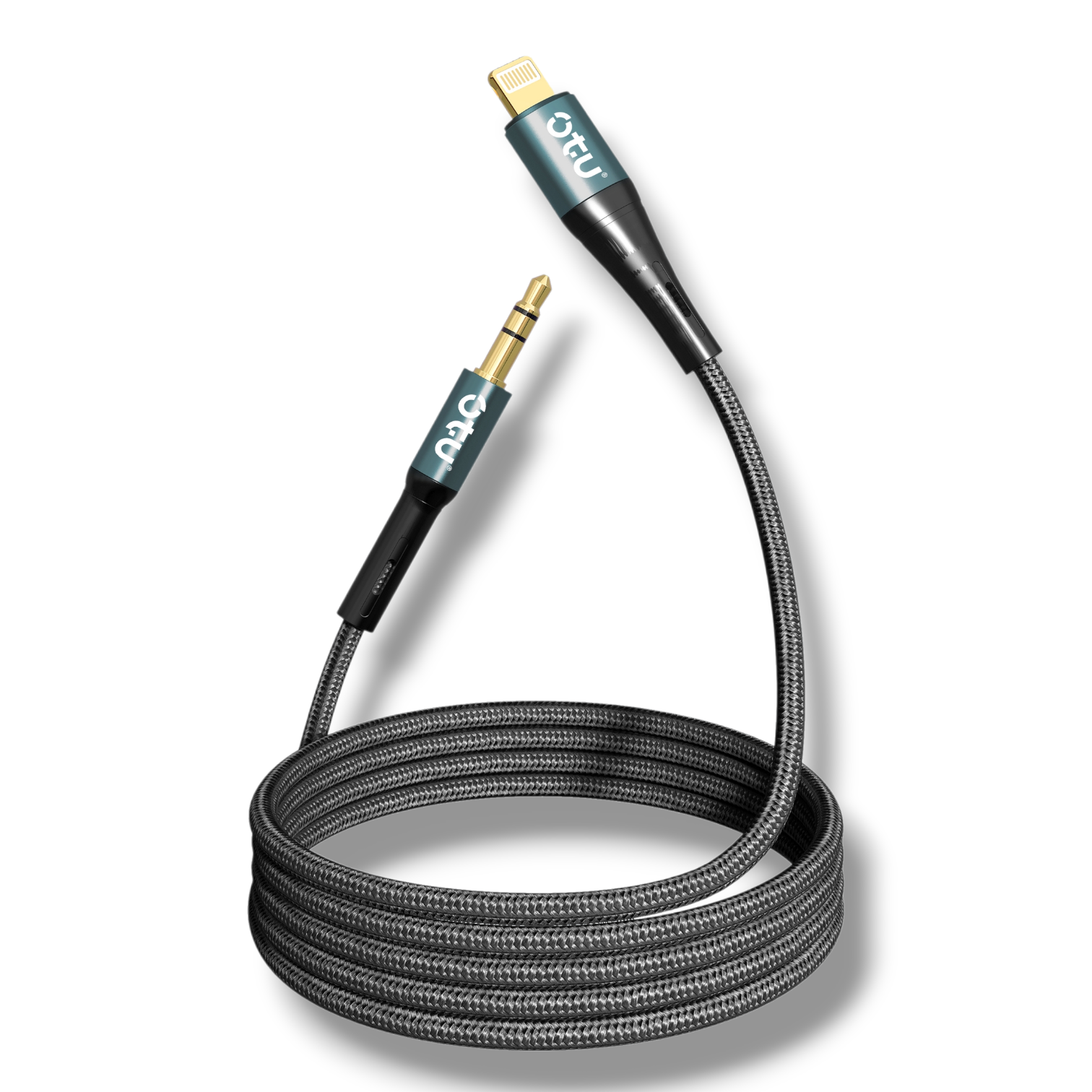 Este es un cable de audio Auxiliar (Aux) a Lightning de la marca otu, diseñado principalmente para conectar dispositivos Apple con puerto Lightning a sistemas de sonido externos.