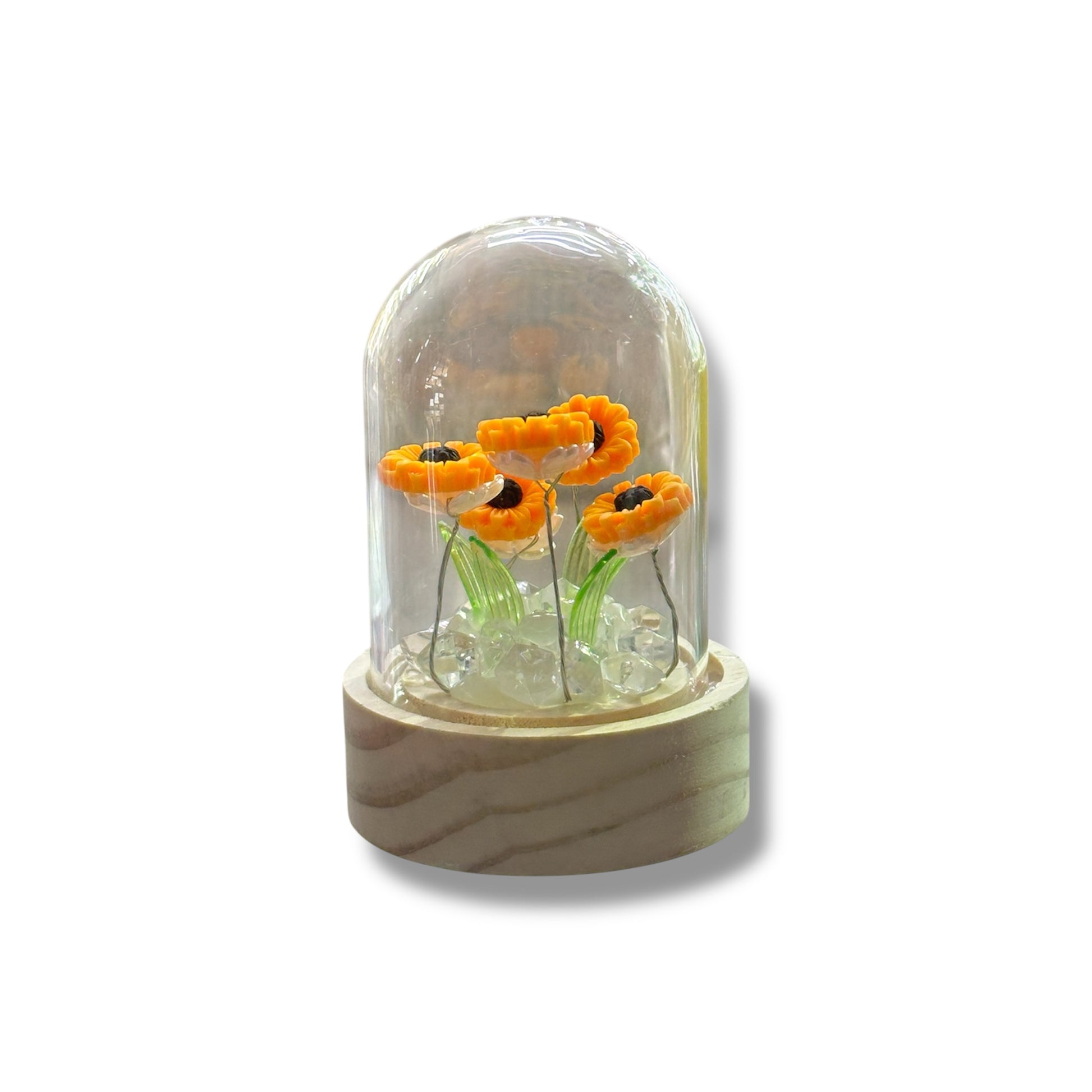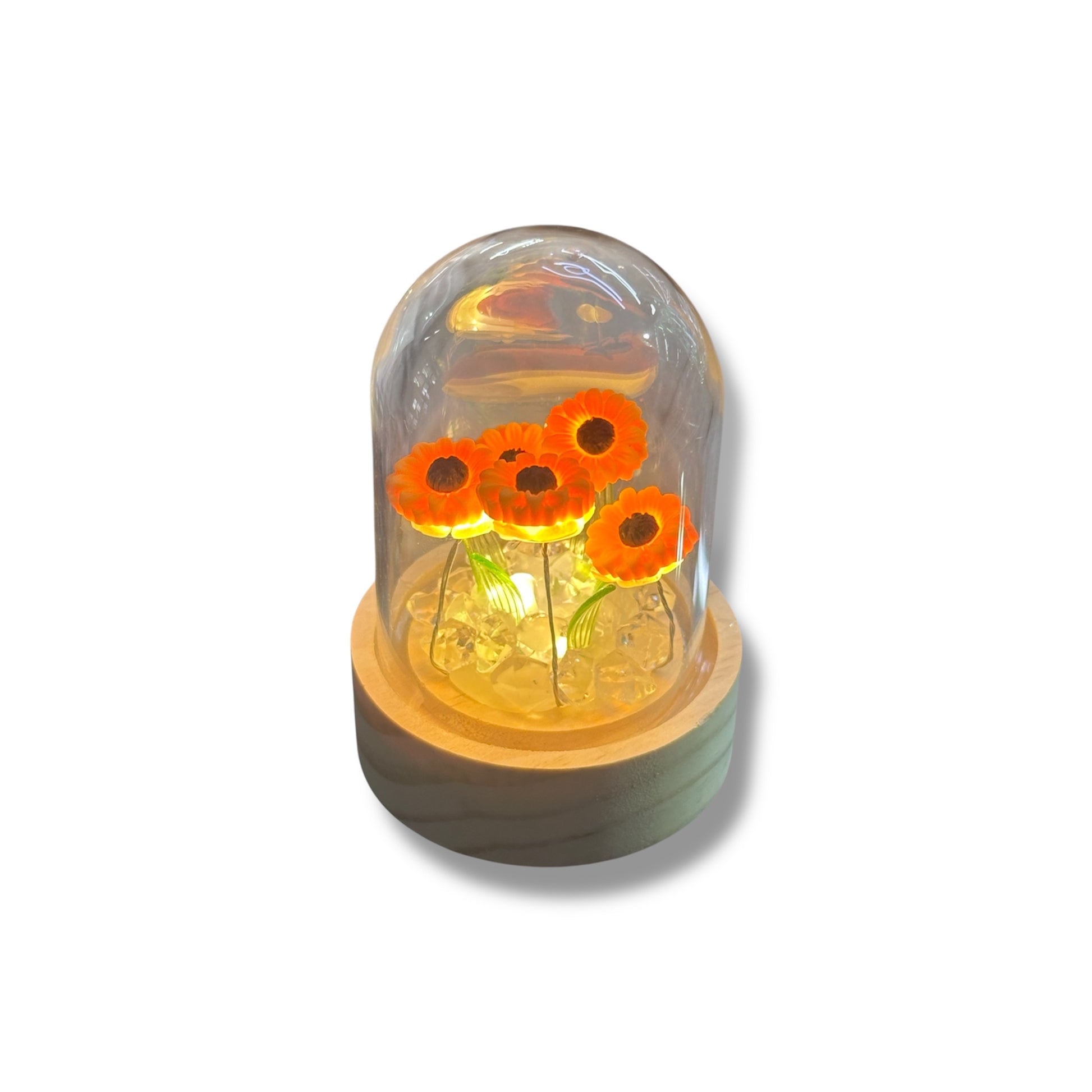 LÁMPARA PLASTICA CON BASE DE MADERA 10 CM APROX